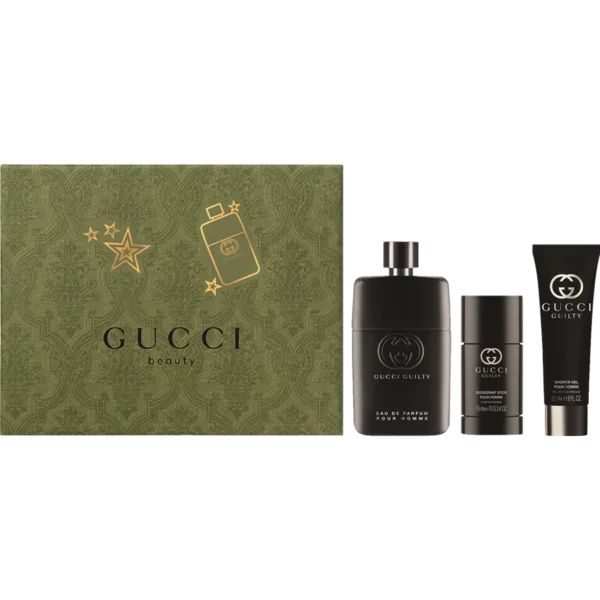 גוצי גליטי מארז בושם לגבר אדפ 100 מ”ל + ג’ל רחצה 50 מ”ל + דאודורנט סטיק 75 מ”ל GUCCI GUILTY SET EDP 100ML + SHOWER GEL 50ML + DEO STICK 75 ML
