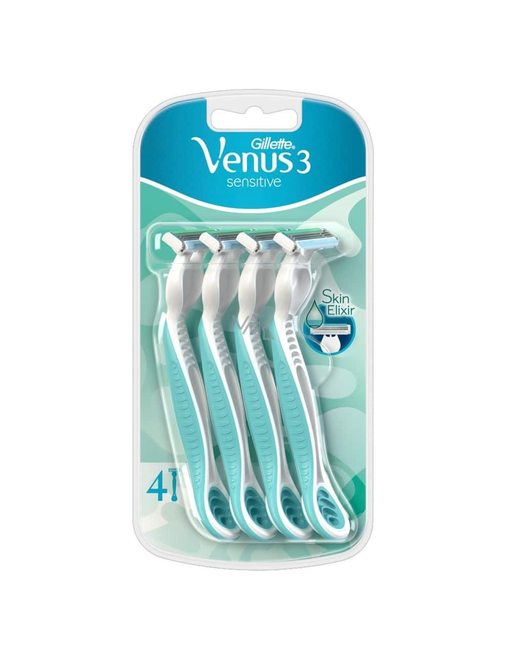 גילט וונוס 3 סנסיטיב 4 סכיני גילוח רב פעמי Gillette Venus 3 Sensitive ready razor 4 pieces for women