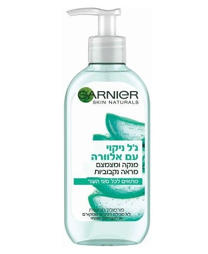 גרנייה גל ניקוי עם אלוורה לכל סוגי העור פורמולה טבעונית 200 מל Cleansing gel with aloe vera and hyaluronic acid Suitable for all