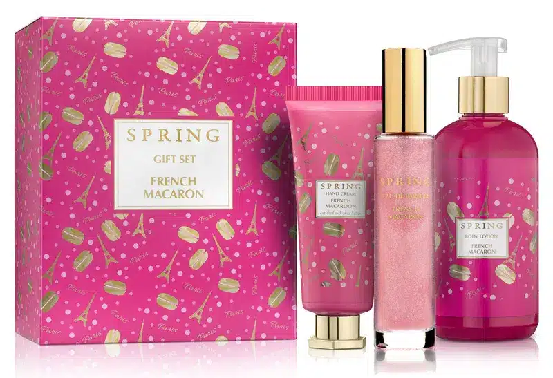 ספרינג פרנץ’ מקרון מארז בושם אדפ 50מ”ל + קרם גוף 260מ”ל + קרם ידיים 100מ”ל SPRING FRENCH MACARON SET EDP 50ML