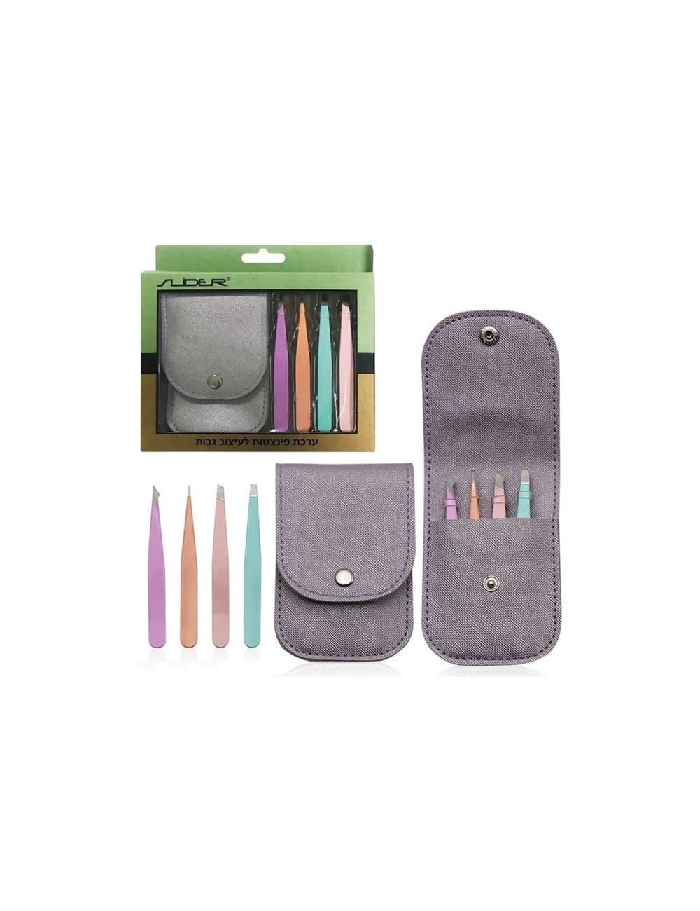 ערכת 4 פינצטות לעיצוב הגבות עם נרתיק