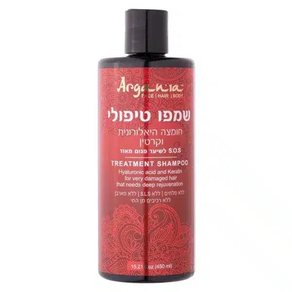 ARGANIA שמפו טיפולי חומצה היאלרונית וקרטין לשיער פגום מאוד ללא מלחים 450 מ”ל
