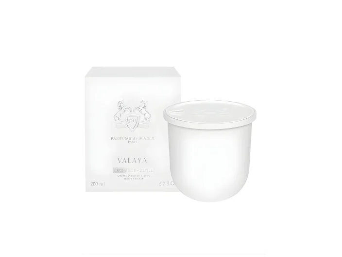 גלה את החוויה המשכית – קרם הגוף המפנק Valaya Refillable Body Cream מדגיש את עולם הניחוח של Valaya בתוך מרקם נעים, מזין ואלגנטי.